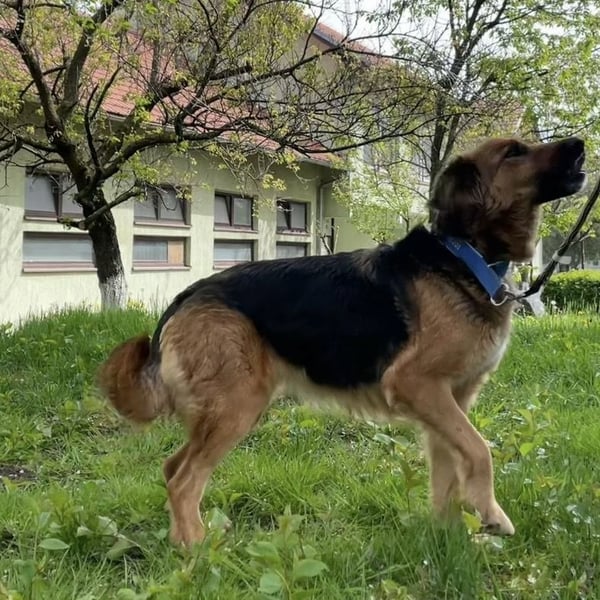 Paula ist ein Mädchen, sie ist laut Tierarztschätzung ca. 1,5 Jahre alt (geb. 15.10.2024), wiegt 15,6 kg und ist 51 cm groß. Vermutet wird ein kleinerer Deutscher Schäferhund Mischling.
