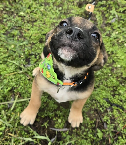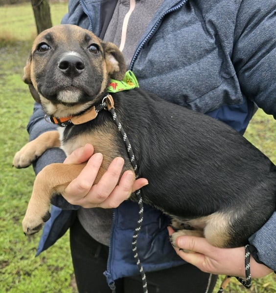 Räuber ist der kesseste und offenste Welpe der Truppe. Er ist hartnäckig und lebhaft, aber auch sehr lehrhaft. Neue Situationen machen ihm nichts aus, er orientiert sich schon gut am Menschen und reagiert gut auf Ansprache und noch besser auf Leckerchen :-) Er ist klug und folgsam, mit ihm wird es nie langweilig!