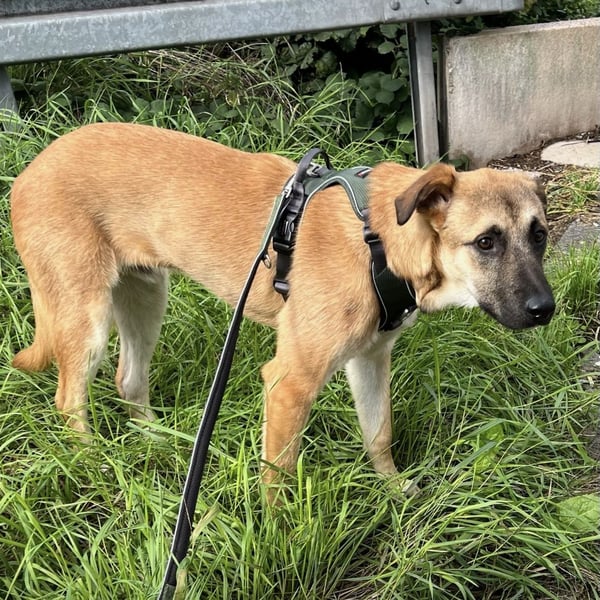 Boško ist ein junger Rüde, laut Tierarztschätzung ca. 11 Monate alt (geb. 01.11.2024), etwa 55 cm groß und wiegt ca. 20kg. Vermutlich handelt es sich bei ihm um einen Schäferhund Mischling.