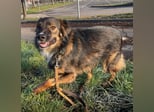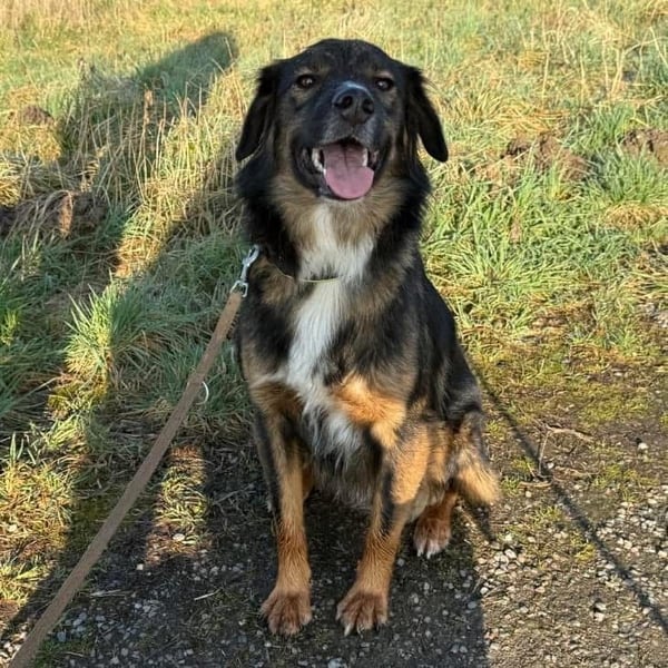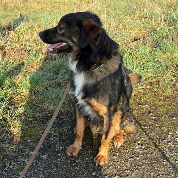 Scotty ist ein Bub, er ist ca. 3,5 Jahre alt (geb. 01.09.2021), ist knapp 60cm groß und wiegt 28kg, vermutet wird ein Schäferhund / Collie Mischling.