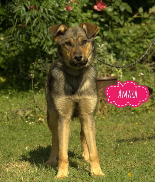 Amara ist ein sanftes, anfangs eher zurückhaltendes Hundemädchen. Sie orientiert sich noch stark an ihrer Schwester, doch Schritt für Schritt erkennt sie, dass Menschen auch etwas Gutes bedeuten können. Sie ist von fröhlichem, verspieltem Wesen, dabei aber von ausgeglichener, mittlerer Energie. Autofahrten meistert sie problemlos, Spaziergänge an der Leine werden bereits geübt.