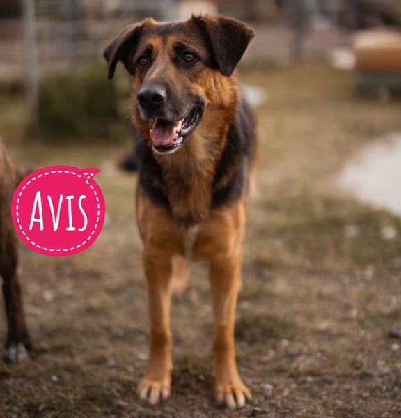 Avis ist ein Mädchen, sie ist laut Tierarztschätzung ca. 3 Jahre alt (geb. 01.09.2022), wiegt etwa 25 kg und ist ca. 55 cm groß. Vermutet wird ein Deutscher Schäferhund-Mischling.