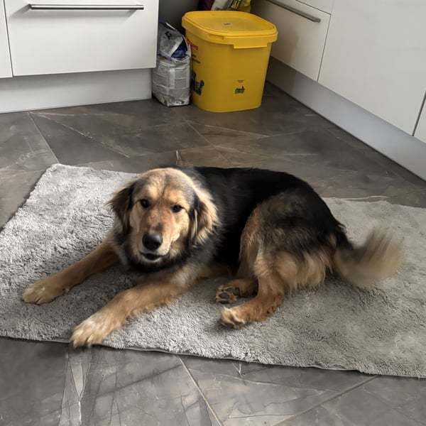 Bei der Ankunft bei Pflegemama, entspannte sie SOFORT völlig, wie wenn sie wusste - mit Tierheim ist vorbei. Man merkte sofort, sie kennt bestimmt ein Haus von innen. Sie spazierte langsam rein, begrüßte alle andere Hunde richtig freundlich zart, aber ohne Ängste. Dann legte sich hin und hat erstmal richtig geschlafen. Das hat sie nach dem ganzen Stress gebraucht. Auch vom ersten Tag ist sie stubenrein. Allgemein ruht sie noch viel und man merkt sie im Haus kaum.