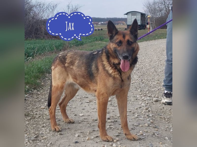 Jax ist ein Bub, er ist laut Tierarztschätzung ca. 5,5 Jahre alt (geb. 04.10.2020), wiegt 26kg und ist 58cm groß. Vermutet wird ein Deutscher Schäferhund Mischling.