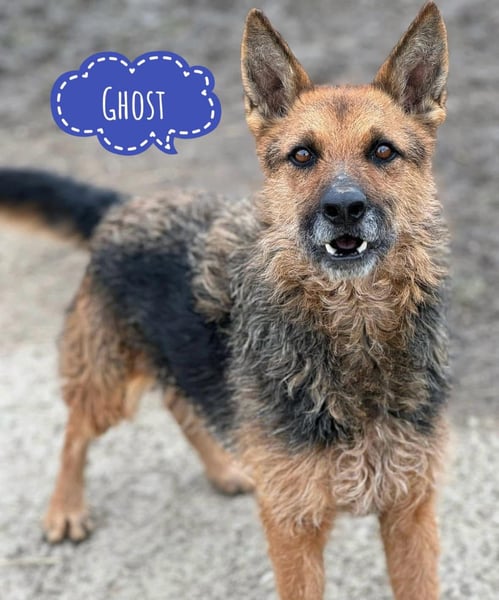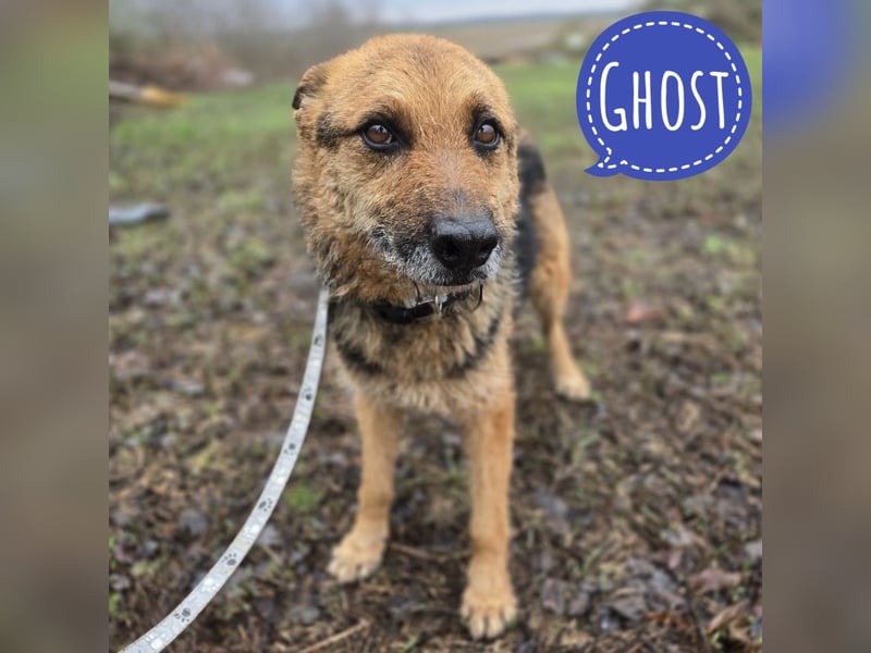 Ghost ist ein Bub, er ist ca. 5,5 Jahre alt (geb. 14.08.2020), wiegt 23 kg und ist 55 cm groß, vermutet wird ein Schäferhund Mischling.