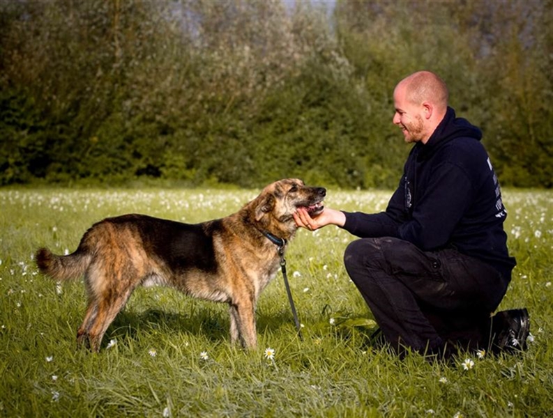 Hier erhält er Unterstützung durch eine erfahrene Hundetrainerin, die mit ihm am Vertrauensaufbau durch kompetente Führung und seiner Impulskontrolle arbeitet.