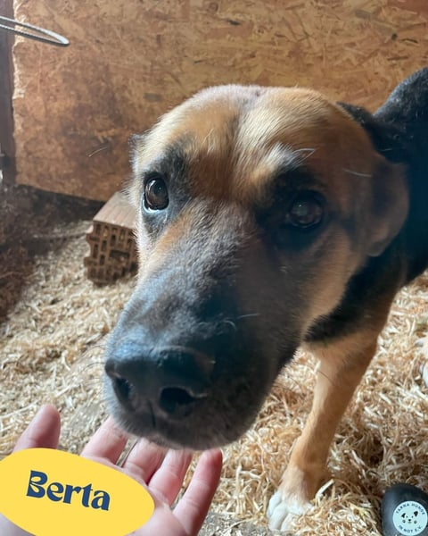 Berta zeigt sich Anfangs zurückhaltend – sie beobachtet lieber erst, ob man es gut mit ihr meint. Doch wenn sie Vertrauen gefasst hat, wird sie zu einer treuherzigen, sanften Hündin, die jede Streicheleinheit dankbar genießt.