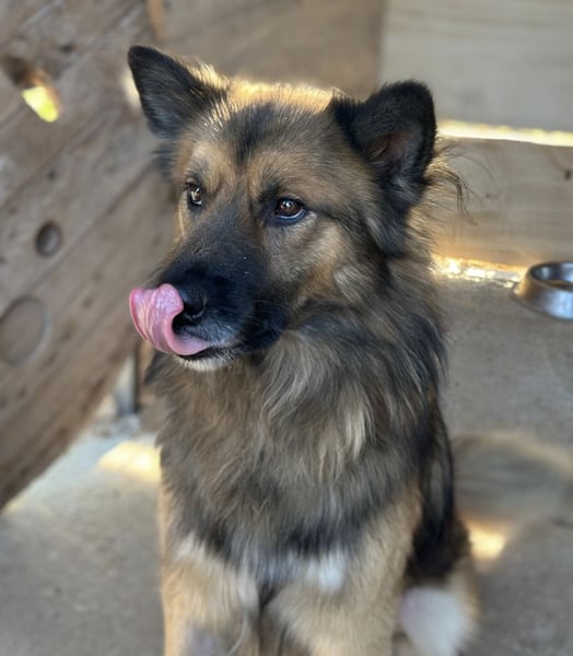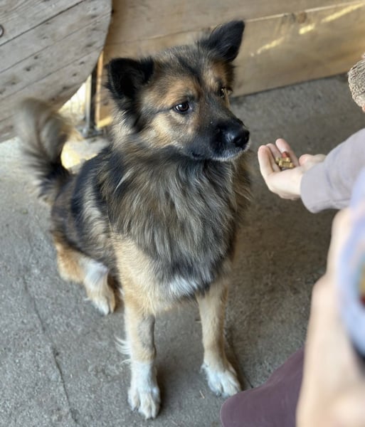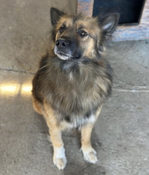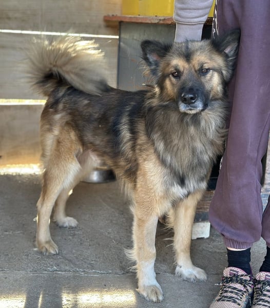 Dante ist ein junger Rüde, laut Tierarztschätzung ca. 1 Jahr alt (geb. 01.09.2024), wiegt 24 kg und ist etwa 55 cm groß. Vermutet wird ein Schäferhund Mischling.