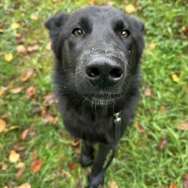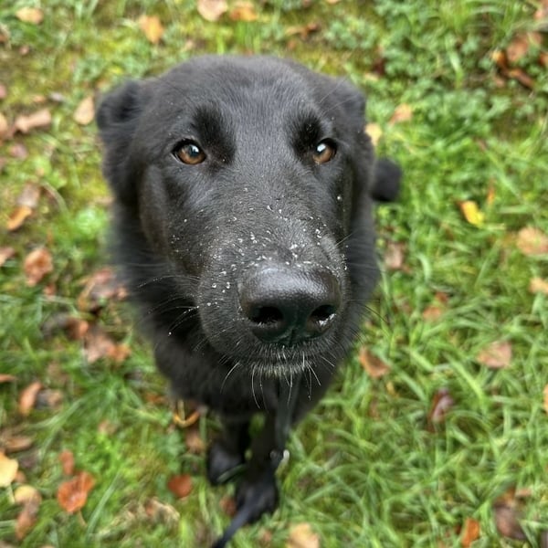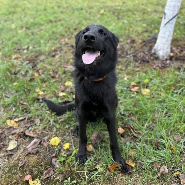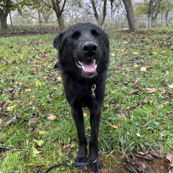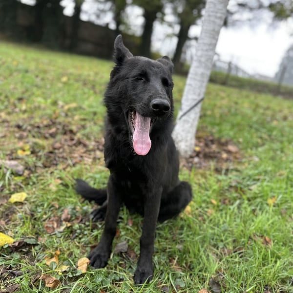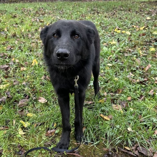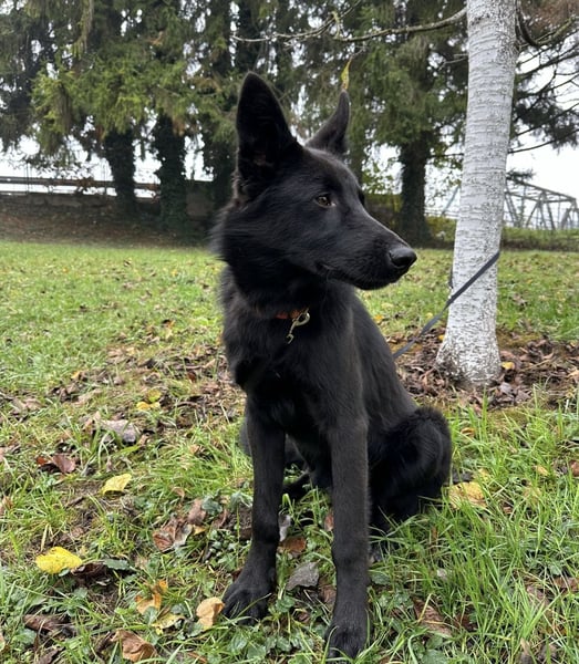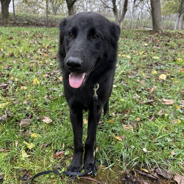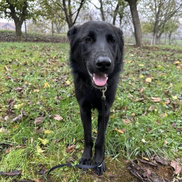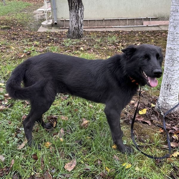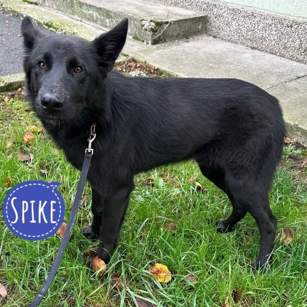 Spike ist ein Bub, er ist laut Tierarztschätzung ca. 1 Jahr alt (geb. 01.11.2024), wiegt 23 kg und ist 56 cm groß. Vermutet wird ein schwarzer Schäferhund-Mischling.