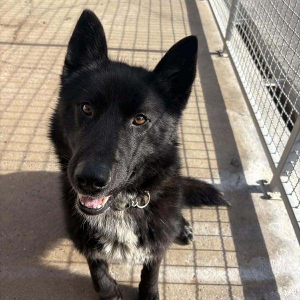 Piki ist ein Rüde, laut Tierarztschätzung ca. 1,5 Jahre alt (geb. 10.09.2024), ca. 50–55 cm groß und wiegt etwa 20–25 kg (dort gibt es leider keine Waage). Er ist ein wunderhübscher schwarzer Schäferhund Mischling.
