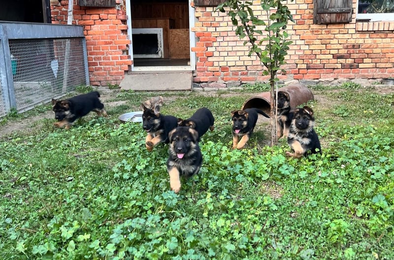Alle Welpen haben viel Auslauf und werden durch den Kontakt zu Kindern, Erwachsenen, sowie zu unseren anderen Hunden sehr gut sozialisiert, sie sind also familiengeeignet. Sie werden geimpft, entwurmt, gechippt und haben rote Papiere des Vereins für Deutsche Schäferhunde. Die Eltern haben gesunde Hüften und Ellenbogen (durch Röntgen nachgewiesen), sind zertifizierte Begleit- sowie Schutzhunde und haben eine standardgerechte Anatomie, also keine überwinkelten Hinterbeine.