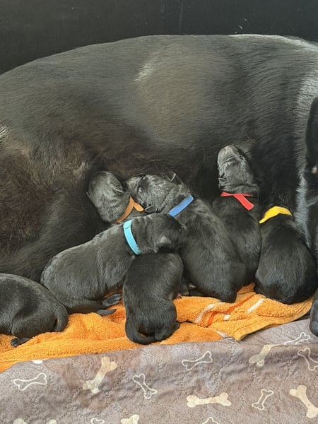 Die Welpen sind Anfang Juli, wenn alles klappt, bereit in ein neues zu Hause zu ziehen.