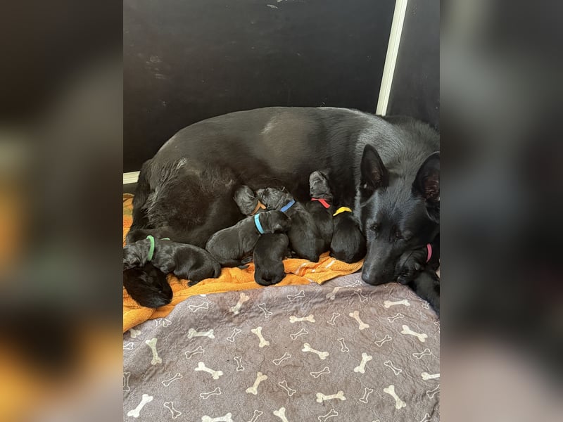 Es sind 5 Rüden und 4 Hündinnen die Farben schwarz und schwarz -braun.