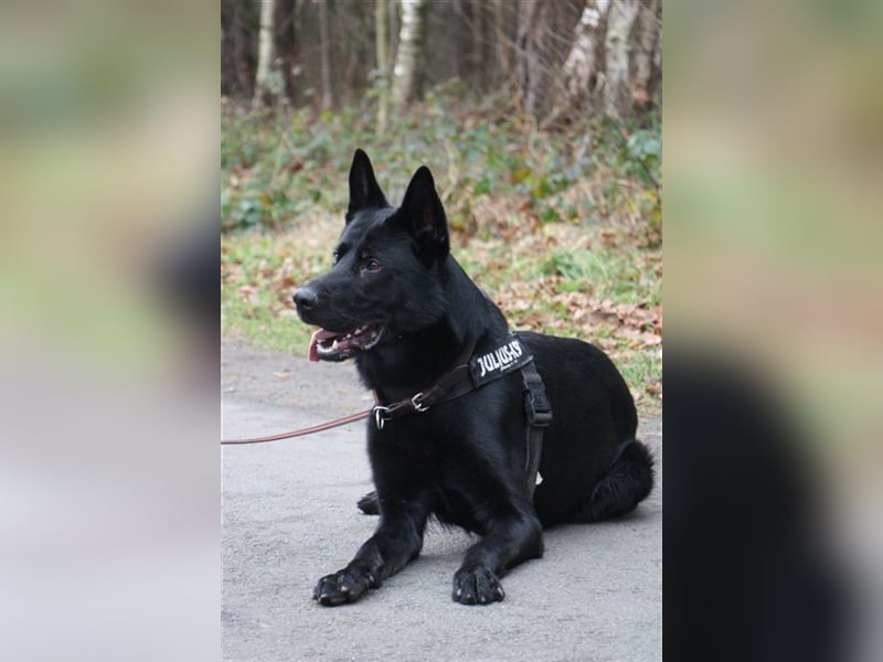 Django ist ein 5 Jahre alter, wunderschöner Schäferhund. Er hat jede Menge Energie, die noch in die richtigen Bahnen gelenkt werden muss. Leider ist im Welpen- und Junghundealter versäumt worden ihn zu erziehen. Er ist nur wenig leinenführig und sehr ungestüm, so dass es einen standfesten und hundeerfahren Menschen braucht, um diesen stürmischen Kandidaten zu führen. Zum Glück ist er Menschen gegenüber sehr freundlich. Im Haus verhält Django sich dagegen ruhig und weiß sich zu benehmen. Er kennt einige Grundkommandos und arbeitet auch gern. Hundebegegnungen sind dagegen momentan sehr schwierig. An der Sozialisation muss ebenfalls dringend gearbeitet werden. Wie sollten also Djangos neues Zuhause/ Menschen aussehen? Ein ruhiges Umfeld und ein eingezäunter großer Garten wären von Vorteil und das wichtigste, geduldige, sportliche, fachkompetente Menschen. Wir sind uns sicher, wer sich die Mühe macht und Freude an intensivem Training mit einem lernbereiten Hund hat, gewinnt hier einen Freund fürs Leben.
