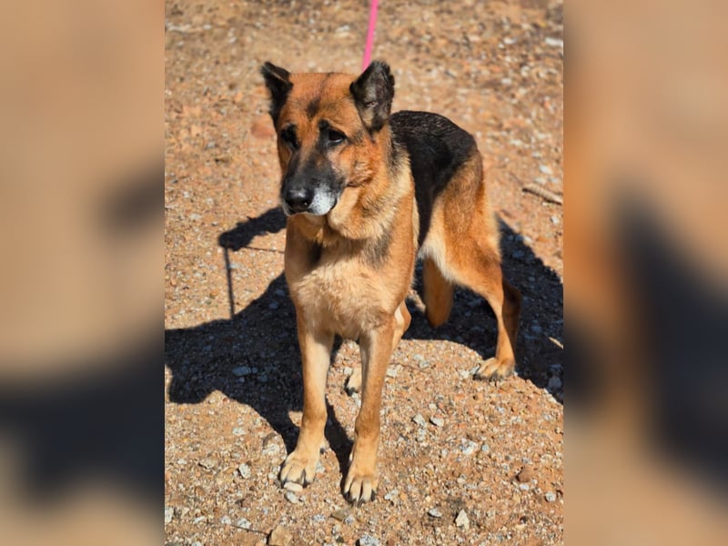 Bonka ist eine ältere Deutsche Schäferhündin, eine gute Seele mit schwerem Schicksal, die wir aus der Perrera ResurJA in Linares geholt haben. Bonka war kurz vermittelt, kam dann zurück, der vorhandene Huskyrüde kam nicht mit ihr zurecht, und ist seitdem in Bayern in einer Hundepension.