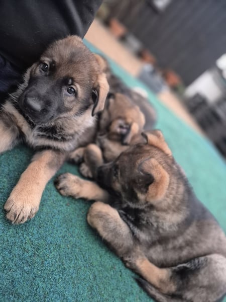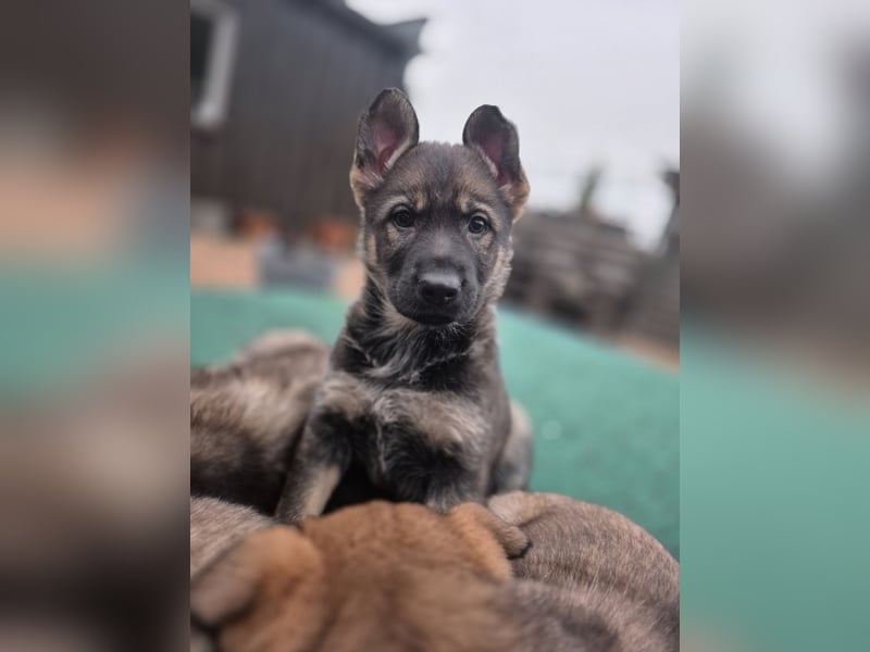 Unsere Hunde stammen aus gesunden, charakterstarken Linien und eignen sich sowohl für Familien als auch für Sport, Dienst oder einfach als treue Begleiter fürs Leben. Die Elterntiere sind sowohl charakteristisch als auch anatomisch sehr ausdrucksstarke Deutsche Schäferhunde von Weltmeisterstämmen. Beide Eltern Tiere haben HD-ED frei, normal und besitzen eine Ahnentafel und mehrere Prüfungen.