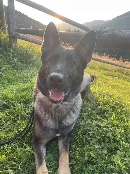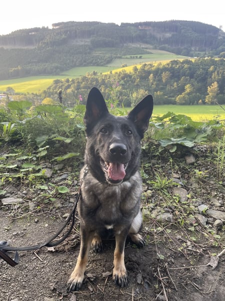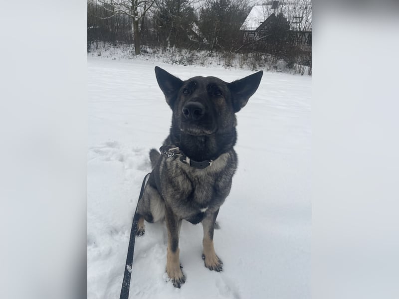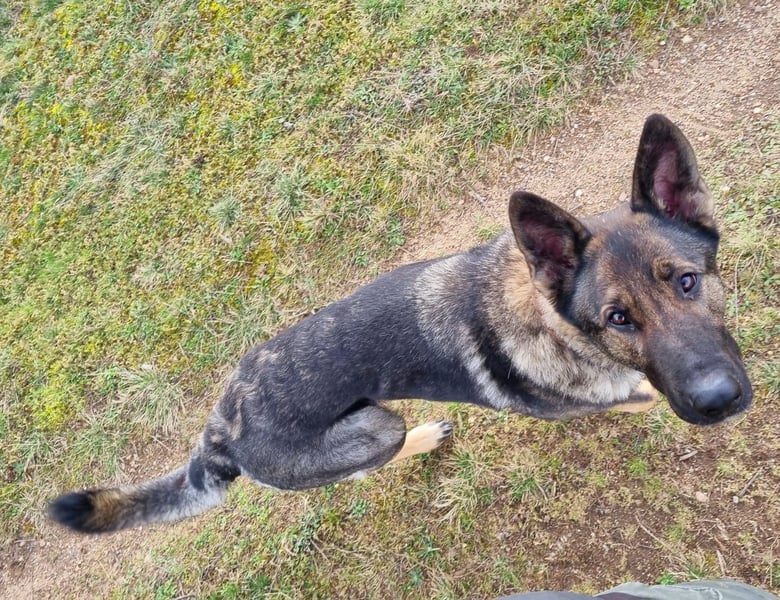 Sie wird im Mai 5 Jahre. Sie kommt aus einer Leistungszucht mit roten SV Papieren, allerdings habe ich sie selbst als Angabe Tier übernommen.