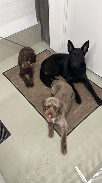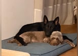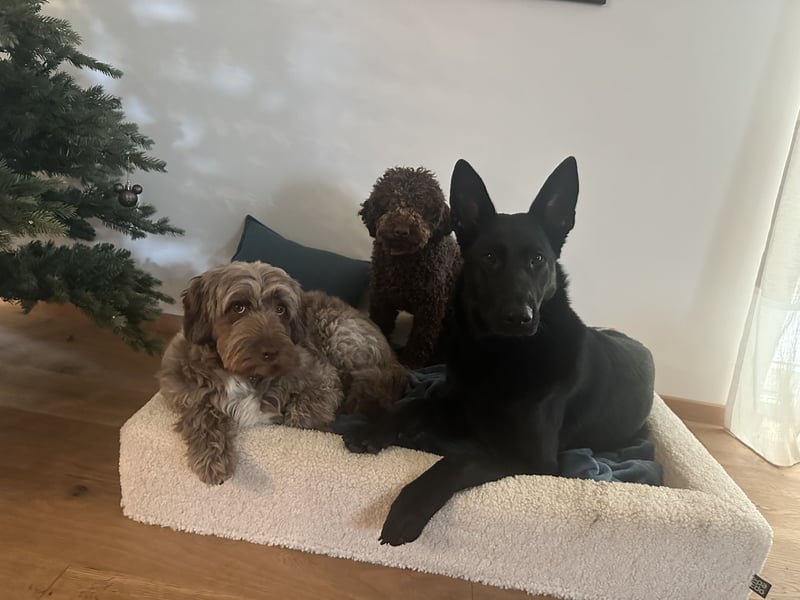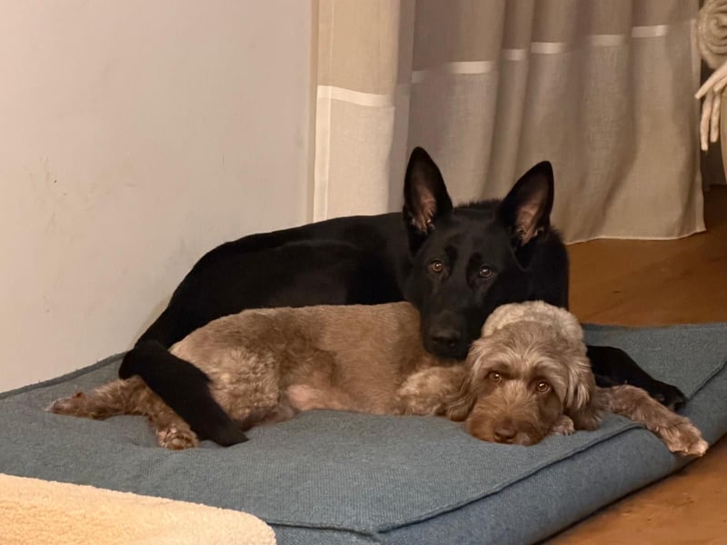 Mit souveränen, dominanten Hunden ist der Umgang problemlos, Freilauf im Wald ist mit passenden Hunden möglich.