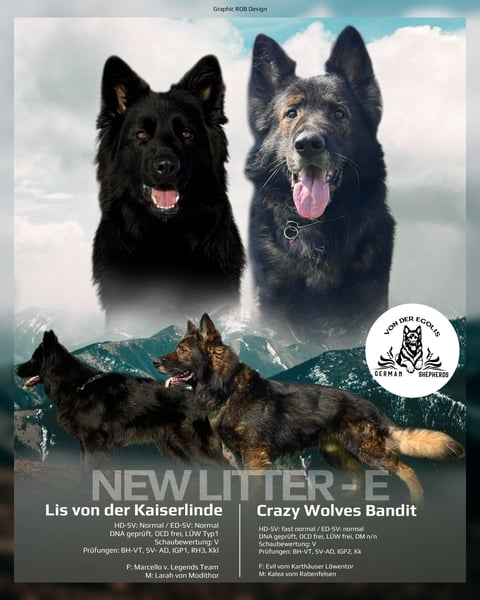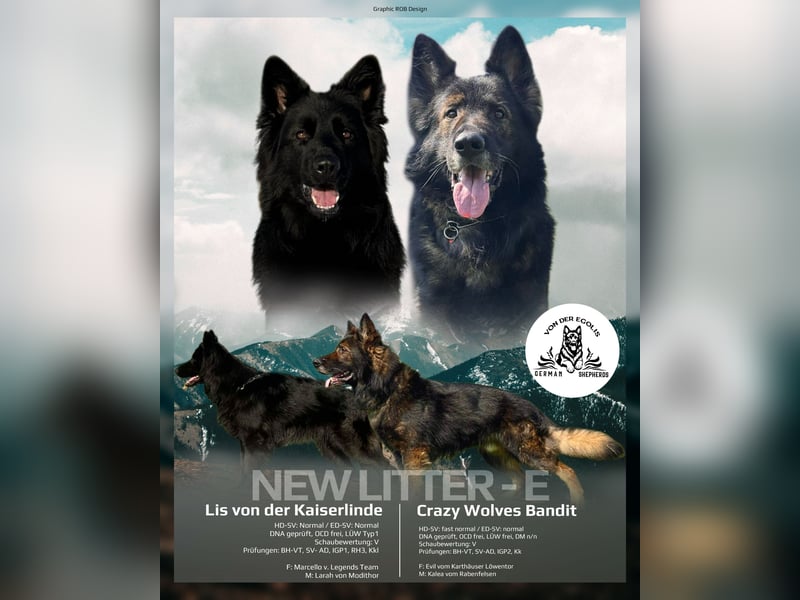 Aus dieser Verbindung versprechen wir uns wesensfeste, sportliche Begleiter, in denen die besten Eigenschaften aus Hochzucht und Arbeitslinie vereint sind. Beide Elterntiere überzeugen durch ihre absolut wesensfesten und ausgeglichenen Charaktere, die ebenso ein hohes Maß an Arbeitsbereitschaft mitbringen !
