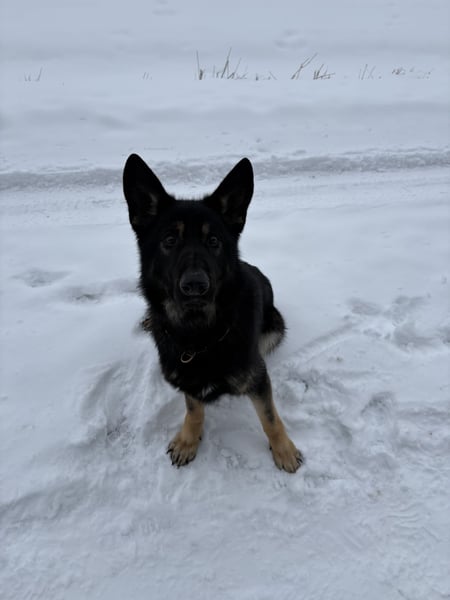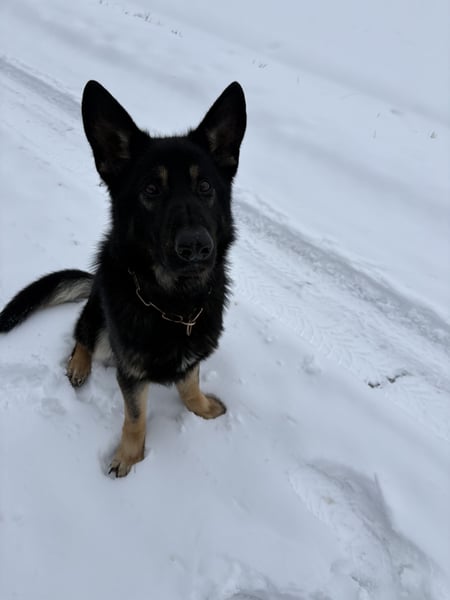 Er wurde am 29.07.2023 geboren und ist ein alltags- und umweltsicherer Rüde. Er kennt alle Grundkommandos, ist mit Kindern aufgewachsen, benötigt aber aufgrund seines Alters weiterhin eine konsequente Erziehung.