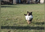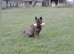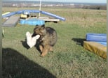 ausdrucksstarker Rüde der recht dunkel wird, sicheres auftreten, freundlich , offen und aufgeschlossen Halsband dunkelblau