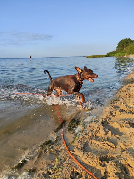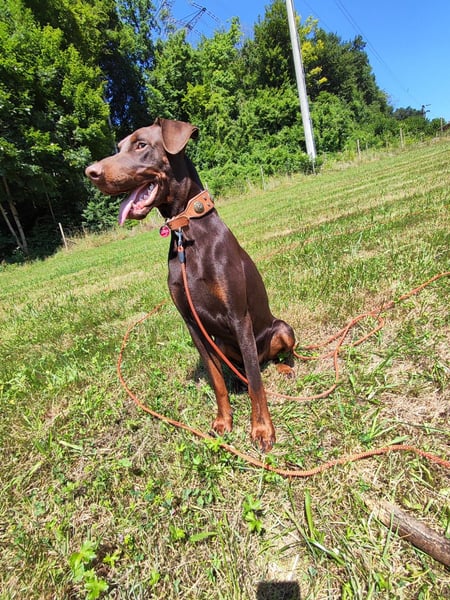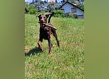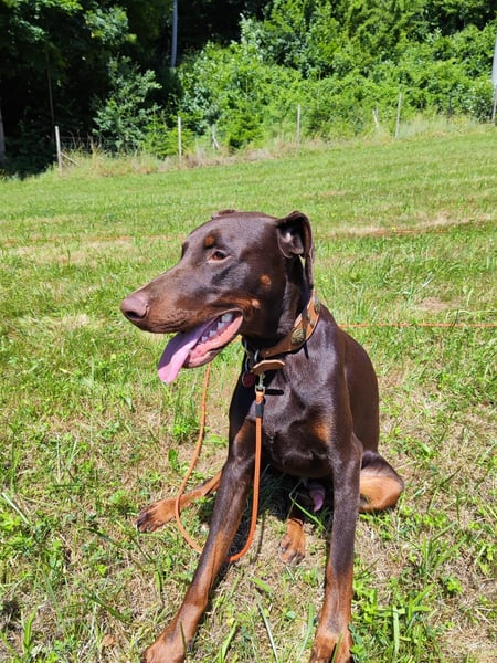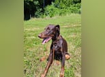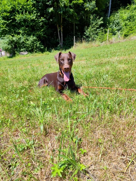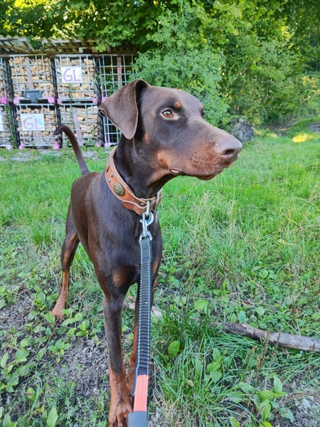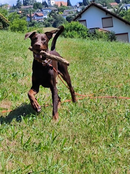 Er ist ein Quatschkopf, Schmuser und er spielt sehr gerne mit seinem Kong oder auf der Wiese mit jedem Stock den er findet.