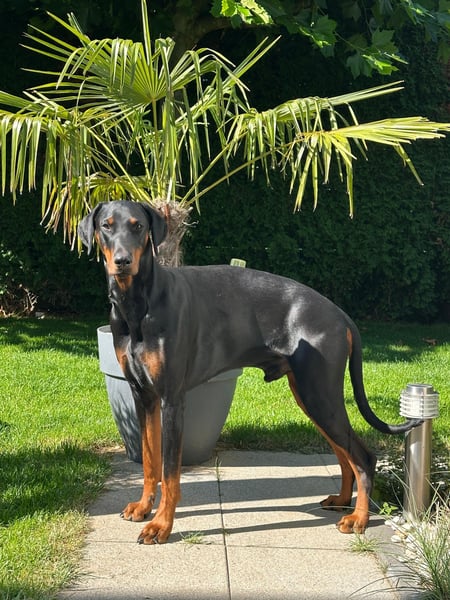 Unser Dobermannrüde Duke, 2,5 Jahre alt, steht ausgewählten, gesunden Hündinnen als Deckrüde zur Verfügung.