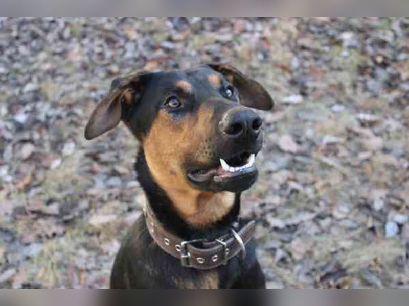 Dieser wunderschöne Dobermann-Schäferhund-Mix bringt alles mit, was man sich von einem jungen Hund wünscht: Er ist freundlich, offen und voller Lebensfreude. Überschwänglich, verspielt und neugierig entdeckt er die Welt. Aron ist gut sozialisiert, menschenbezogen, aktiv und lernwillig – ein junger Hund mit großem Potenzial.