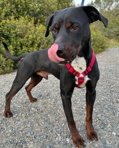 Hartley geht super an der Leine, hat dabei ein angenehmes Energielevel und genießt voll und ganz die Zuwendung der Menschen.