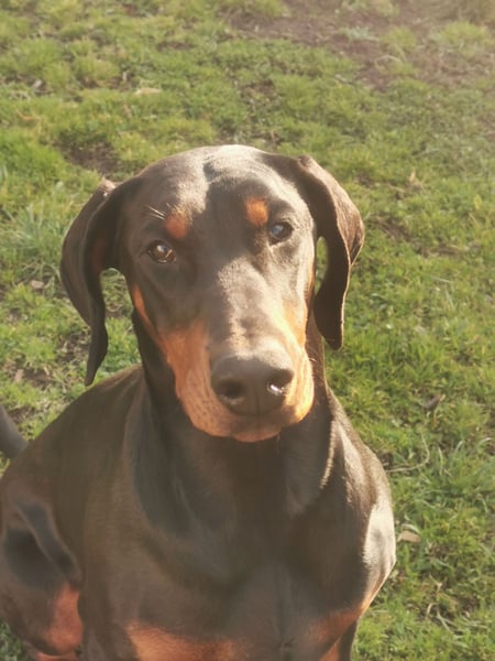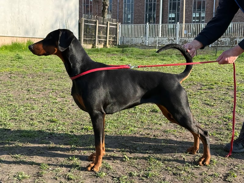 Sie ist ein sehr arbeitsfreudiger und führiger Hund, gleichzeitig verschmust und sehr menschenbezogen. Vally sucht ständig Kontakt zu seinen Bezugspersonen und zeigt ein sicheres Territorialbewusstsein. Ein echter Dobermann mit Charakter. Sie hat für Ihr Alter und Größe kräftige Knochen, eine wunderschöne rot-braunen Brustspiegel- und Beinfarben und einen athletischen, harmonischen Körperbau. Vally ist ideal für Menschen, die sowohl einen treuen Familienhund als auch einen leistungsbereiten Arbeitshund suchen.