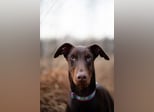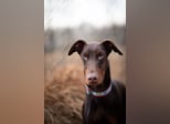 Dobermann, 14 Monate alt ( braun mit Abzeichen )