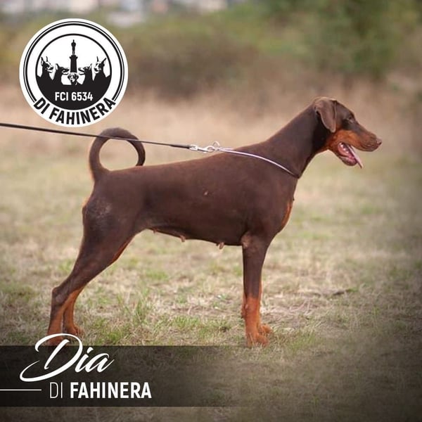 Sie stammt aus der renommierten Zucht Di Fahinera House in Serbien – einer außergewöhnlichen und mit viel Leidenschaft geführten Dobermannzucht. Die Züchter Milan und Sanja sind in der internationalen Dobermannszene sehr bekannt und haben bereits zahlreiche Champion-Hunde gezüchtet.