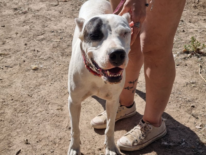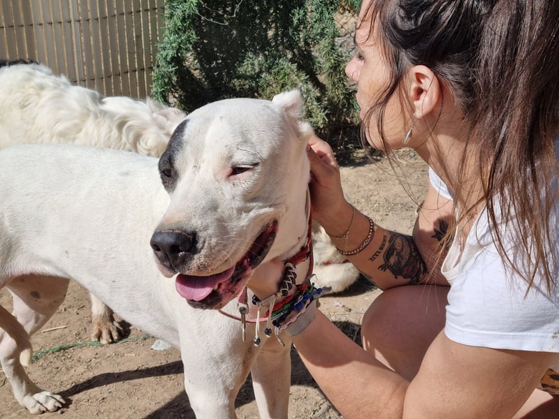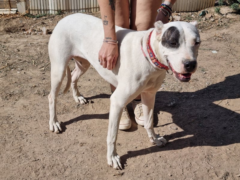 Santa Ana wurde von fremden einfach über den Zaun unseres Shelters geworfen, sie war in einem schrecklichen Zustand, Ihre Ohren wurden mit einer Schere einfach abgeschnitten und die Wunden waren stark entzündet. Santa Ana ist leider Taub aber das schränkt Sie nicht sehr ein. Sie ist eine sehr soziale und freundliche Hündin. Sie liebt Menschen und Kinder und war mit unserer Tierschützerin lange mit auf Ihrer Arbeit in einer Tierarztpraxis, dort zeigte sich die friedliche Hündin wirklich als absolut sozial und zufrieden.