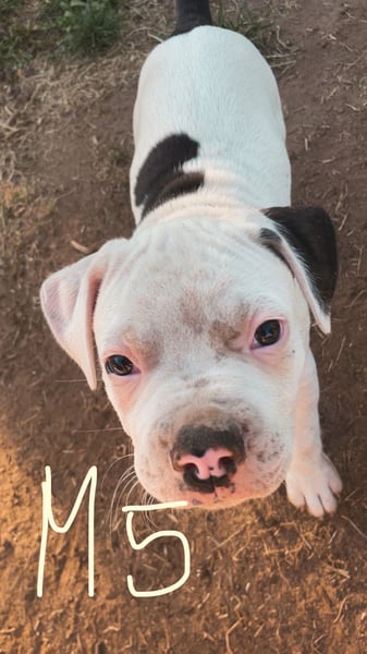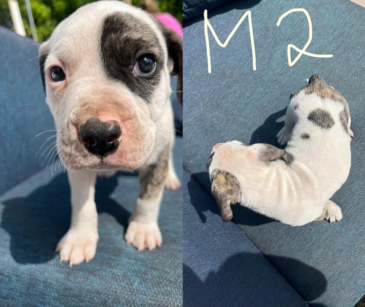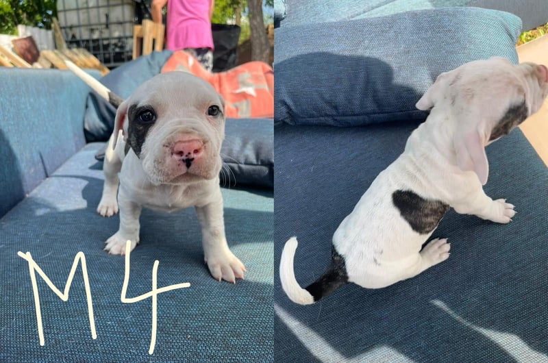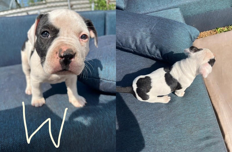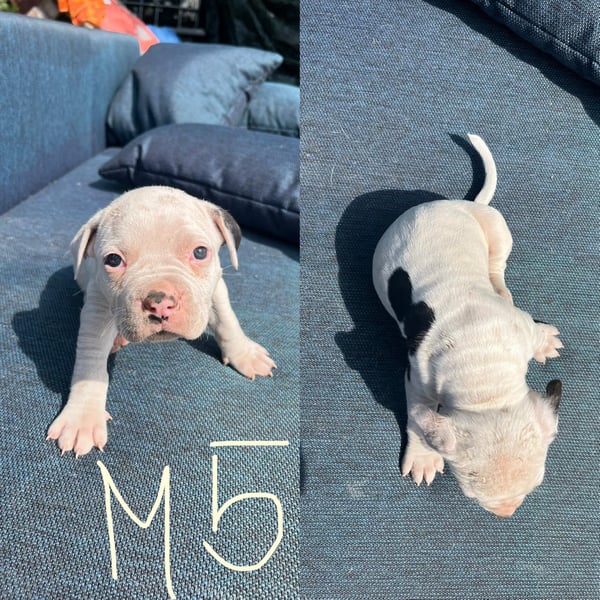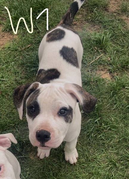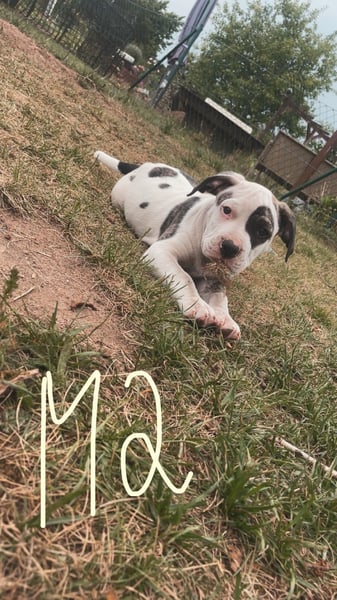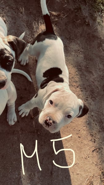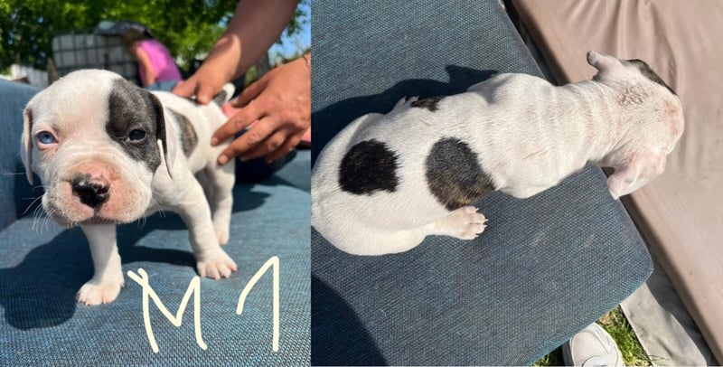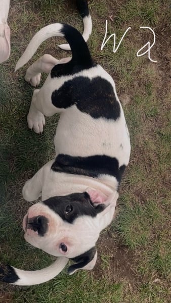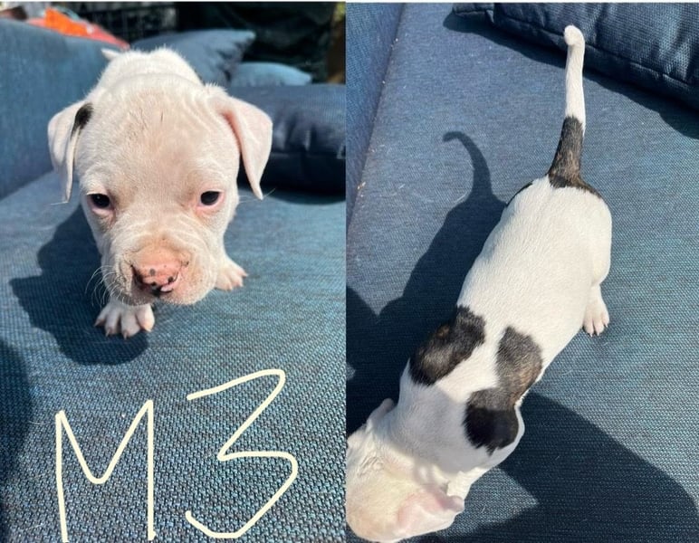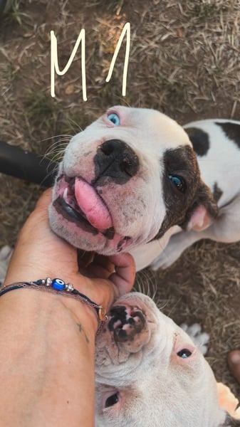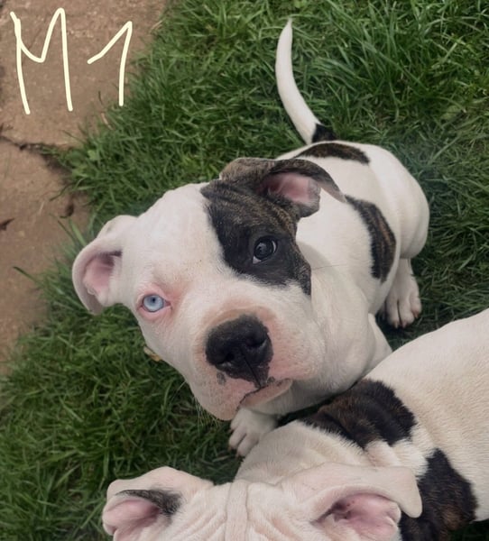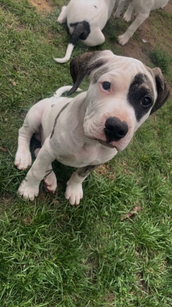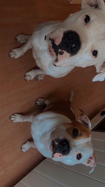 Die Mutter ist ein Old English Bulldoggen/ American Staffordshire Terrier - Mix und der Vater ein Dogo argentino(Fotos werden beigefügt)