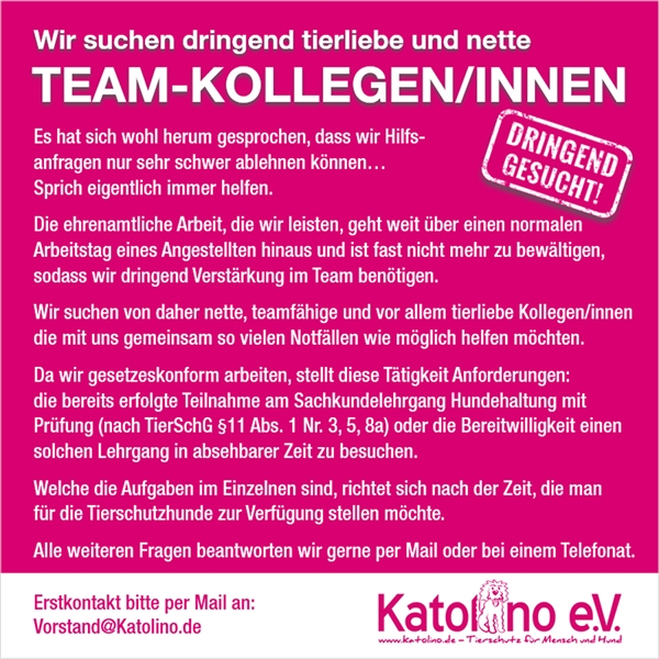 Dringend tierliebe und nette Team-Kollegen/innen gesucht!