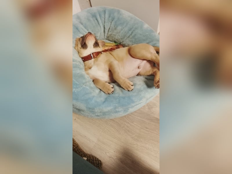 Hallo suchen für unseren scharbo ein neues zu Hause er ist ein Rüde und sehr lieb und verspielt ein Bulldoggen Mix .1 Jahr alt .geimpft 2 Fach entwurmt gechipt und EU Ausweis .