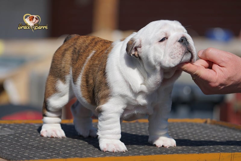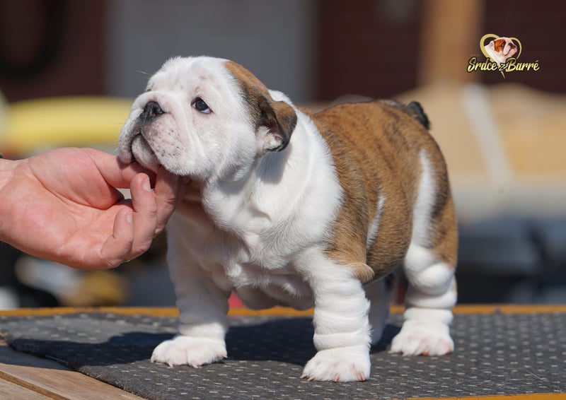 Wir haben ein wunderschönes Weibchen - Aurelia Grace. Sie ist ein wunderschönes, kräftiges und gesundes Mädchen. Sie wächst mit uns im Haus auf und ist an die Geräusche gewöhnt. Sie hat ein ruhiges Wesen, ist aber sehr freundlich und kommunikativ. Sie kennt Kinder. Sie wird sicherlich ein ausgezeichneter Familienbegleiter sein, denn das Wesen der Englischen Bulldogge ist außergewöhnlich. Jeder, der schon einmal eine Englische Bulldogge besessen hat, weiß, wovon ich spreche. Die Eltern sind tierärztlich getestet und können bei uns besichtigt werden. Alle unsere Welpen sind 100% reinrassig, sie haben FCI Ahnentafel. Wir züchten nach FCI Standard und ausschließlich mit Hunden, die diesem Standard entsprechen und mit besten Blutlinien. Gerne geben wir Ihnen in einem persönlichen Gespräch weitere Informationen. Unverbindliche Besuche sind jederzeit willkommen. Sollten Sie weiter entfernt wohnen, senden wir Ihnen gerne aktuelle Bilder oder ein Video.