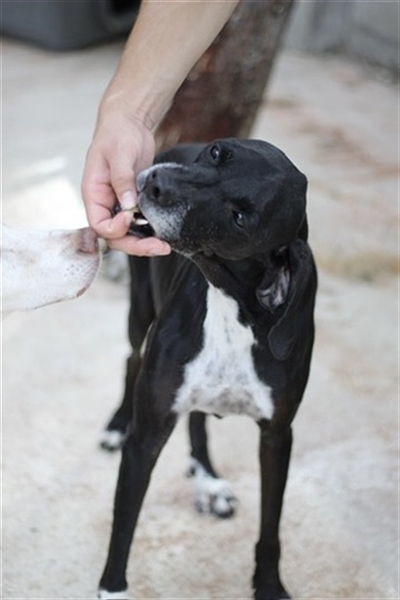 Momentan lebt er mit Emely zusammen, die beiden verstehen sich super. Auch hier zeigt er sich als sehr sozial und versucht die anderen mit seiner guten Laune anzustecken, fordert sie zum spielen auf und liegt gerne bei ihnen.