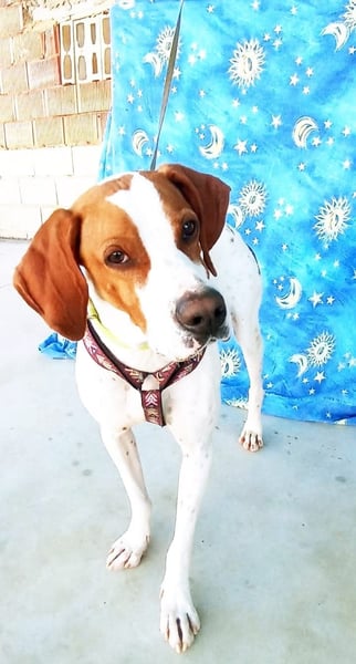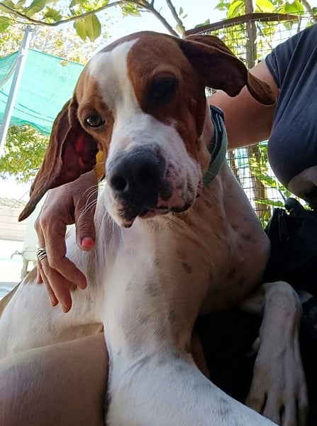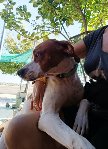 Neil ist 1,5 Jahre alt (Stand 12/2024) und ein überaus liebenswerter Pointer-Gentleman. Er kam im Oktober dieses Jahres in die Obhut unserer Freunde in Linares. Ein Junge hatte den abgemagerten Jagdhund immer wieder in der Nähe einer Olivenölmühle vor der Stadt gesehen. Der tierliebe Jugendliche versorgte Neil immer wieder mit Futter, konnte ihm aber kein Zuhause schenken. Als die Herbstregenfälle einsetzten informierte der junge Mann die Tierschützer über seinen Freund, und nun wohnt Neil in der ArcoNatura und wartet geduldig darauf, dass er seine eigenen Menschen adoptieren darf.