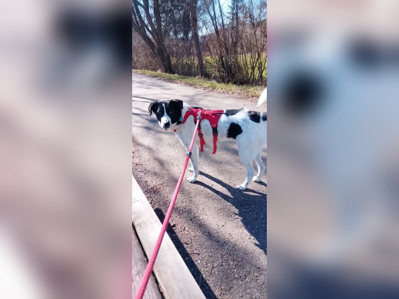 Bella ist eine Pointer-Mix Hündin, geboren am 11.05.2021 und somit 4,5 Jahre alt. Sie ist ungefähr kniehoch, geimpft, gechipt und kastriert.