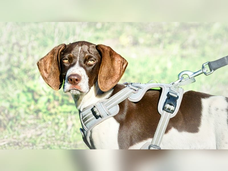 Dürfen wir Ihnen Scout vorstellen? Scout ist ein junger Rüde vom Typ Pointer, geboren im Juli 2025. Ausgewachsen wird er voraussichtlich eine Schulterhöhe von etwa 55–60 cm erreichen. Er wurde von seinen früheren Besitzern abgegeben, da diese nicht ausreichend Zeit für ihn hatten. Derzeit lebt Scout auf einer privaten Pflegestelle in Portugal.