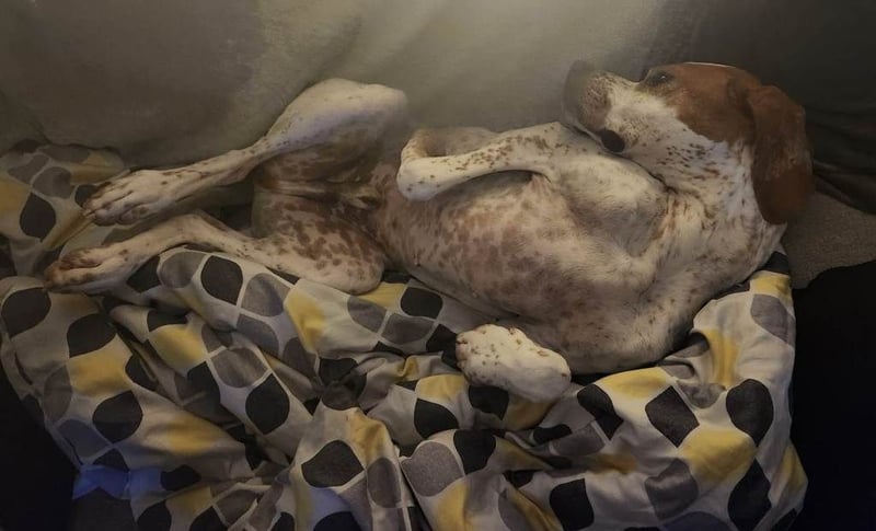 Als es vor Kurzem so unglaublich kalt war, ging Levi mit einem Freiwilligen in die Pflege. Er hat eine dünne Haut und verträgt so viel Kälte, Wind und Regen nicht. Der Freiwillige hat eine kleine Hündin und die Beiden verstehen sich prächtig. Sie gehen mehrmals täglich spazieren. Draussen interessiert Levi sich weiterhin sehr für Vögel, aber im Haus ist er wie ausgewechselt. Er liebt ein warmes Bett und lässt sich am liebsten bekuscheln.