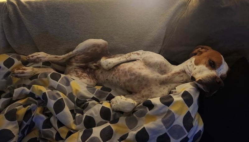Als es vor Kurzem so unglaublich kalt war, ging Levi mit einem Freiwilligen in die Pflege. Er hat eine dünne Haut und verträgt so viel Kälte, Wind und Regen nicht. Der Freiwillige hat eine kleine Hündin und die Beiden verstehen sich prächtig. Sie gehen mehrmals täglich spazieren. Draußen interessiert Levi sich weiterhin sehr für Vögel, aber im Haus ist er wie ausgewechselt. Er liebt ein warmes Bett und lässt sich am liebsten bekuscheln.