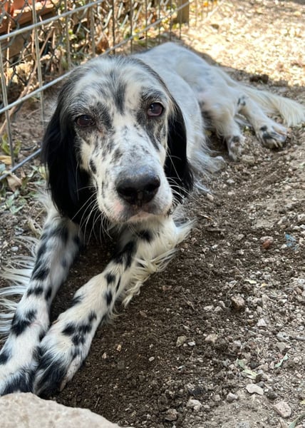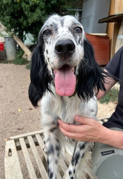 Setter Dino kommt von einem Jäger, der ihn als jagduntauglich eingestuft hat. Er ist im Mai 2023 geboren und bereits kastriert. Der menschenbezogene Setter ist sehr anhänglich, er möchte am liebsten immer bei seinem Menschen sein. Streicheleinheiten nimmt er sehr gerne an. Laut Tierschützerin fährt er gut im Auto mit. Dino zeigt sich sozial seinen Artgenossen gegenüber. Gerade lebt er mit Lillo im Zwinger. Seine Schulterhöhe beträgt ca.53cm.