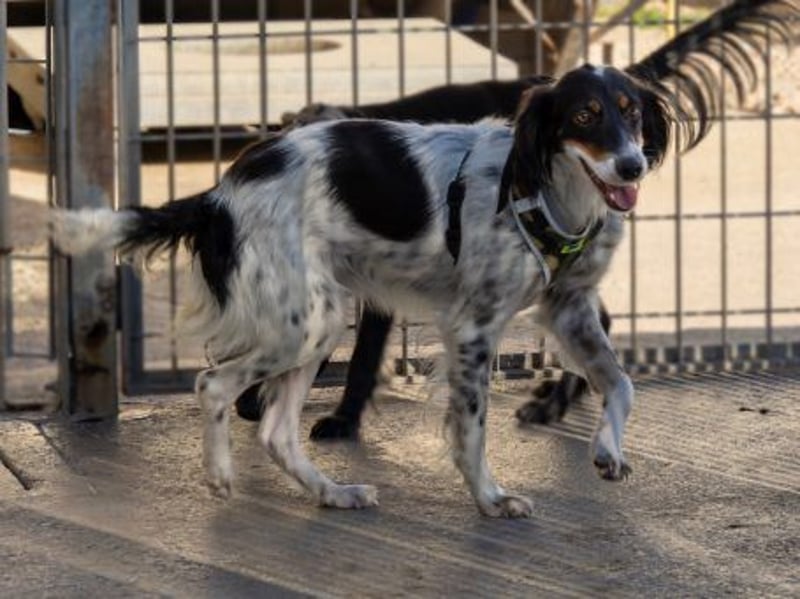 Geraldina ist ein ganz besonderes Hundemädchen. Zart, sanft und unglaublich verschmust – mit einem Herzen, das sich nichts sehnlicher wünscht, als endlich irgendwo anzukommen. Sie ist etwa 35 cm groß und sieht aus wie ein Mini-Setter – mit seidigem, weichem Fell, das man am liebsten den ganzen Tag streicheln möchte. Sie hat eine leicht verkürzte Rute, aber das tut ihrem Charme keinen Abbruch. Gestreichelt zu werden genießt sie auch sehr, denn körperliche Nähe ist für Geraldina das Größte.
