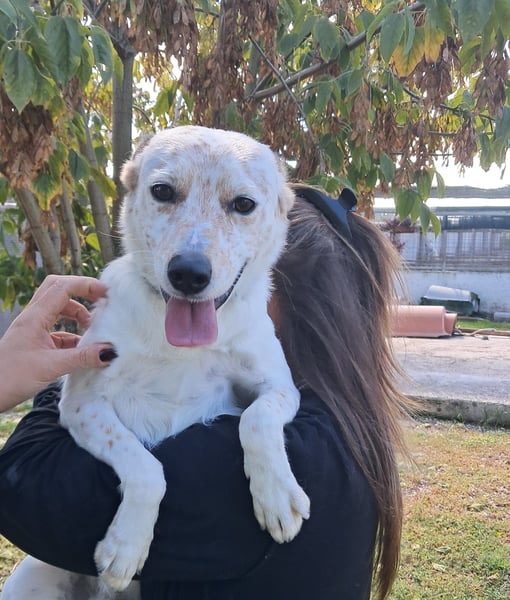Unser bezaubernder Tommy ist ca 1 Jahr alt (Stand Okt 25) und noch nicht kastriert. Als ich ihn in Italien kennenlernen durfte zauberte er mir sofort ein Lächeln ins Gesicht. Seine gute Laune und Energie sind einfach ansteckend. Den kurzen Moment, den er den Zwinger verlassen durfte rannte er fröhlich über das Gelände. Es war unmöglich ihn auf Fotos einzufangen. Kurzerhand nahmen wir ihn auf den Arm um ein paar Schnappschüsse machen zu können. Und weiter ging es im Galopp. Mir blutete das Herz als der herzige Lebefroh zurück in den kleinen Zwinger musste. Dort wird er jetzt wieder Tag und Nacht, Woche für Woche sitzen…
