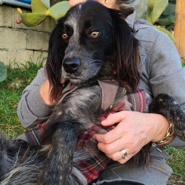 Carlo landete im vergangenen Sommer in einem Tierheim in Kalabrien. Über seine Vorgeschichte ist nichts bekannt, er wurde ohne Mikrochip aufgefunden. Seit Kurzem lebt er in einem privaten Refugium bei Paola. Dort lebt er mit mehreren anderen Hunden zusammen und kommt mit ihnen gut zurecht.