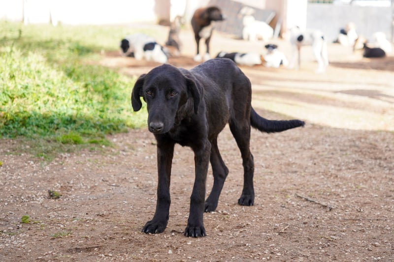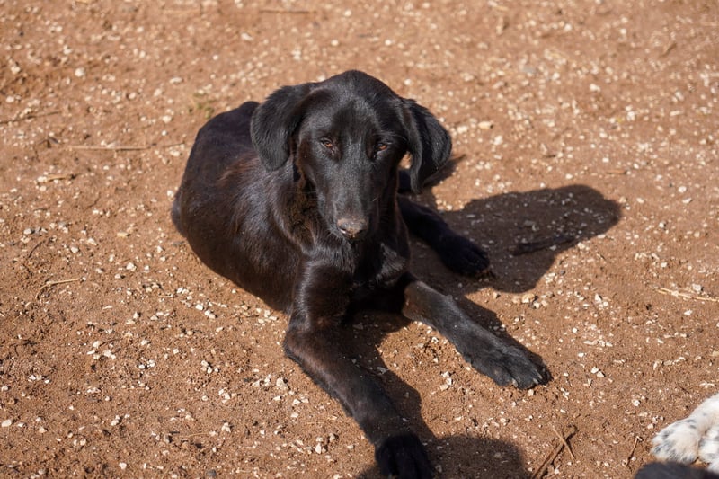 Dinos: schwarz, sieht aus wie ein Labrador-Mix;
