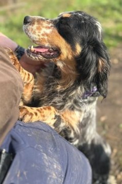 Seit diesem Moment hat Pamela alle im Tierheim im Sturm erobert. Als wir zu Beginn 2026 im Tierheim waren, hat sie uns auch gleich um ihre Pfötchen gewickelt. Sie ist eine neugierige, sehr menschenbezogene Setterdame, die uns am liebsten ganz nah sein möchte. Kuscheln, Bürsten, Spielaufforderungen – davon kann Pamela gar nicht genug bekommen. Sie geht freundlich und aufgeschlossen auf alle zu, ist sozialverträglich und versteht sich wunderbar mit ihren Artgenossen.