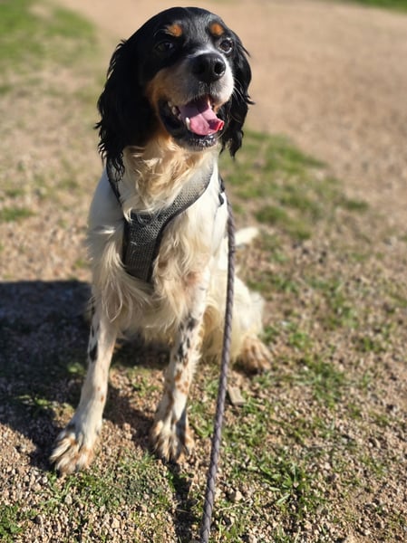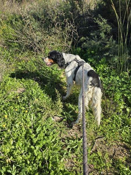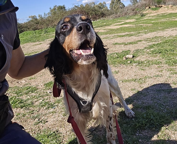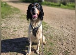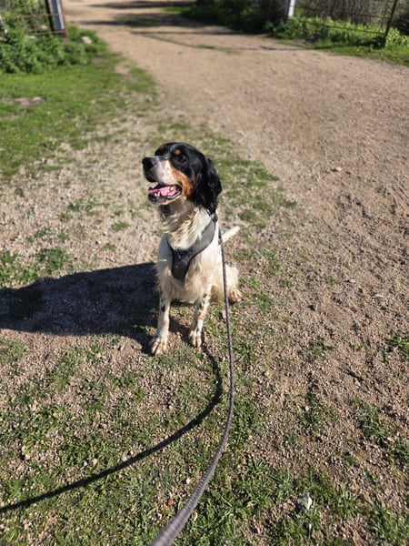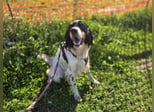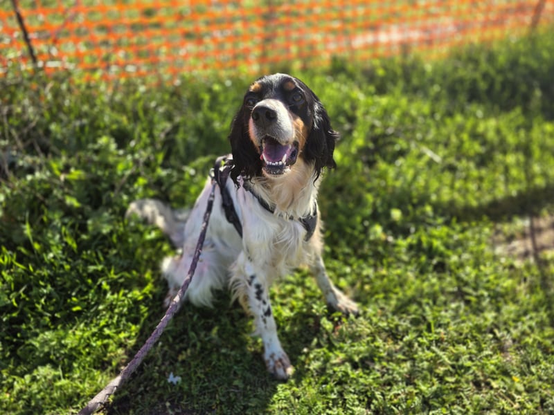 Moreno gehörte einem Jäger. Leider war er aus Jägers Sicht nicht jagdtauglich und wurde im Tierheim abgegeben. Moreno ist ein Englisch Setter Mix, für diese Rasse aber eher klein und Zierlich. Wahrscheinlich stecken auch Bretonengene ihn ihm.